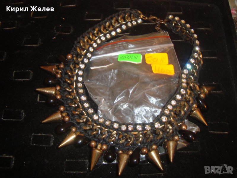МАСИВНА БРОНЗОВА ОГЪРЛИЦА с ЦИРКОНИ и ШИПОВЕ ХЕВИ-МЕТАЛ Нео ГОТИКА СТИЛ 15123