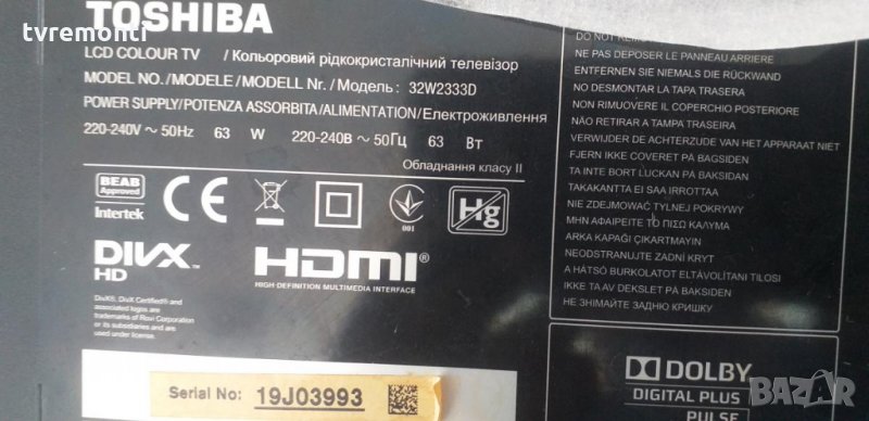 телевизор захранване UE-3790-01UN-LF марка TOSHIBA модел 32L2333D и 32W2333D панел 96.32S03 00 power board UE-3790-01UN-LF POWER SUPPLY TOSHIBA 32L2333D Борда е гарантирано работещ Демонтиран от уред със счупен дисплей тесвана от нашия техник