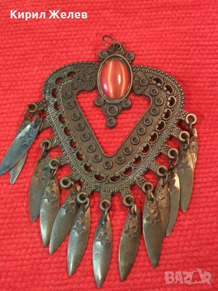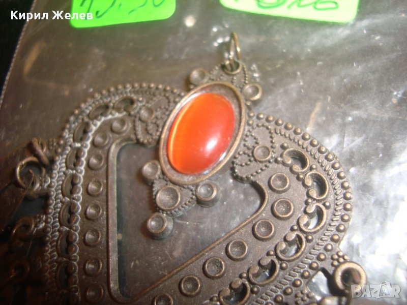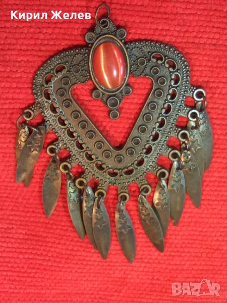 КРАСИВ МЕСИНГОВ МЕДАЛЬОН с ПОЛУ-СКЪПОЦЕНЕН КАМЪК КОТЕШКО ОКО 6066