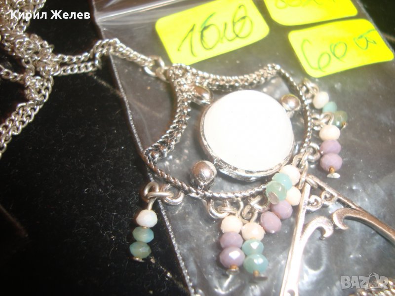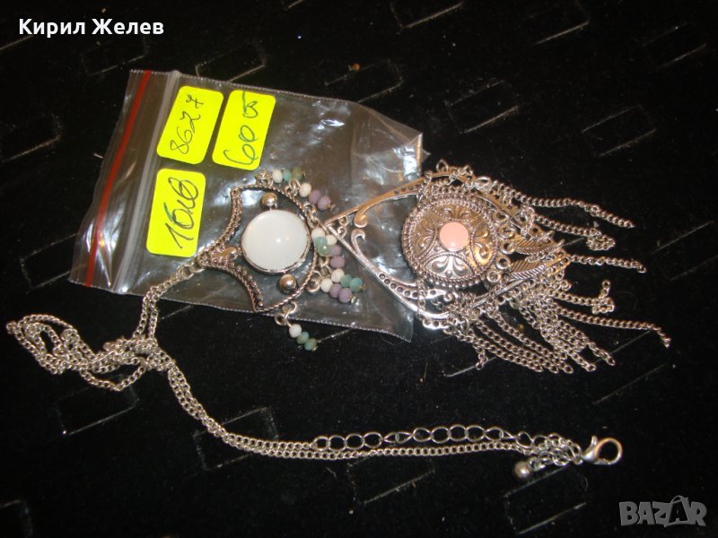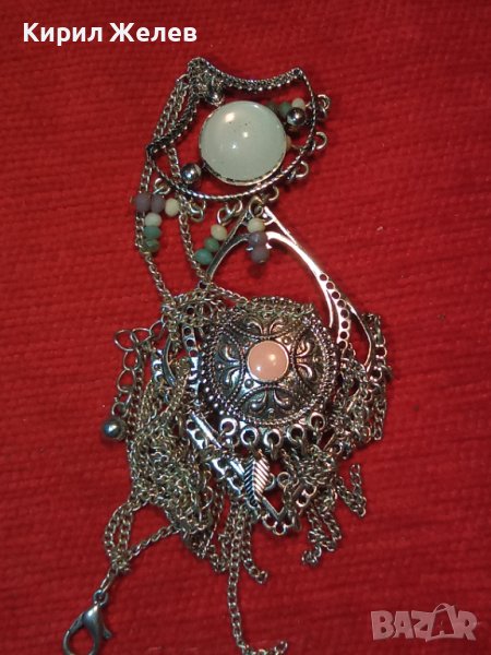 СРЕБРИСТ ОРИЕНТАЛСКИ СТИЛ МЕДАЛЬОН КОЛИЕ ОГЪРЛИЦА с БЯЛ и РОЗОВ КВАРЦ 8627