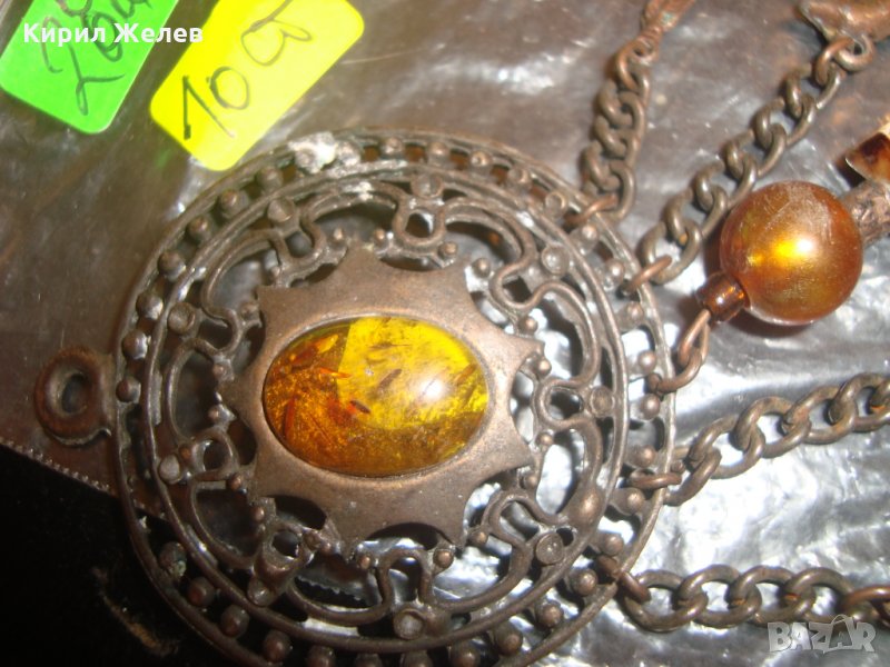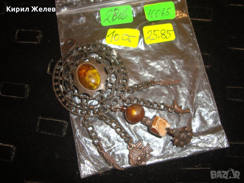 ВИНТИДЖ БРОНЗОВ МЕДАЛЬОН с КЕХЛИБАР и ФИГУРАЛНИ ВИСУЛКИ 10065