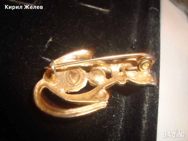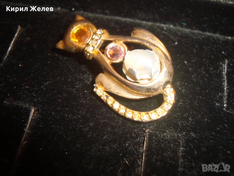 БРОШКА КОТКА с ПОЗЛАТА МЕДНА с КАМЪНИ ВИНТИДЖ АРТ ДЕКО БИЖУ 3736