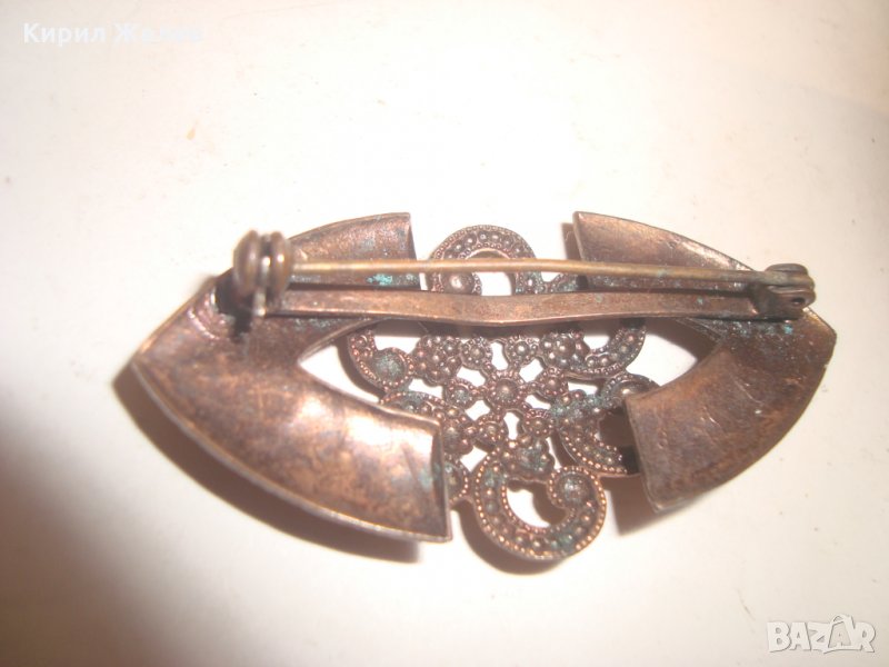 СТАРИННА МЕДНА МАЙСТОРСКА АР ДЕКО АЖУРНА БРОШКА РЕТРО БИЖУ 12365