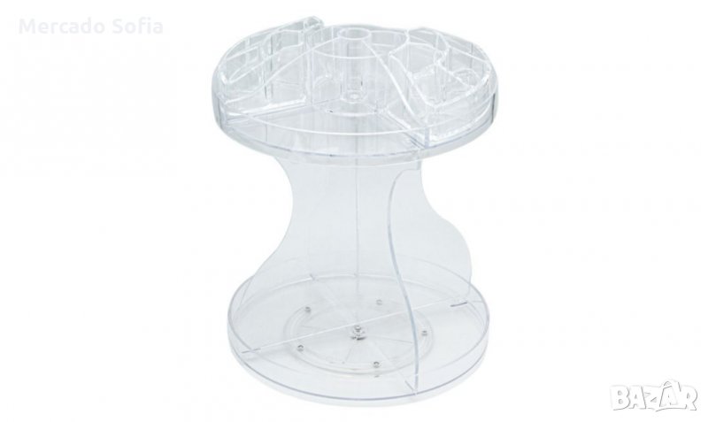 Акрилна поставка въртяща се 2 нива, прозрачен акрил с въртене на 360º.Той има 2 нива с 2 големи тави и 2 допълнителни отделения с по 5 слота за малки опаковки.Разстоянието между 2 нива е 24 см, а дълбочината на дисковете е 3 см.Подредете лесно всичките си козметични опаковки и намерете с един поглед това, от което се нуждаете.