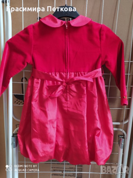 Красива и изключително запазена /като нова/ рокля тип балон, на коланчето и ръкавите декорирана с цветчета, подходяща за коледни празници, поводи или фотосесия. По етикет е за 24 месеца, но е носена от дете на 4 години.