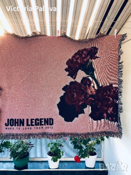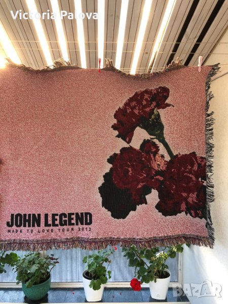 Размер:110см на 125см.прекрасно колекционерско пано във вид на ковьор,което може да се използва и в домакинство,но по-добре е да бъде за декорация:)мотото на Джон Ледженд е:закачаш карамфила в сакото си и с уверена походка тръгваш насреща на любовта:) Паното е купено за 200 долара и сигурно ще представлява интерес за меломани.иначе може да бъде също прекрасен подарък за 14 февруари.