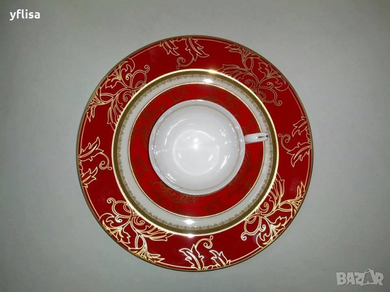 Луксозен, червен сервиз за хранене от иновативен, костен порцелан Y o L i S a , здрав и трудно чуплив.