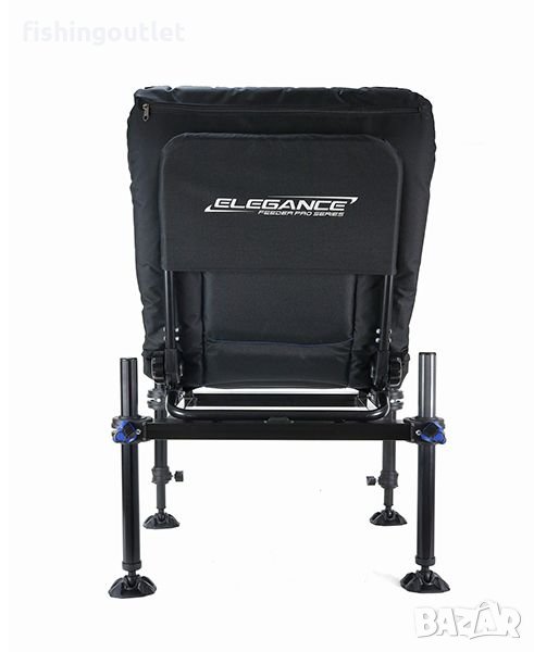 Нов фидер стол, който със сигурност ще зарадва Фидеристите, които искат да имат максимален комфорт при риболова и в същото време да търсят аксесоари с максимално качество! Разполага с фантастично удобна и дебела тапицирана седалка и облегалка (която се регулира под ъгъл), както и здрава и масивна алуминиева конструкция и всичките четири регулируеми крака (предната част е телескопичен тип), така че този стол може лесно да се адаптира към всеки терен. Краката също са масивни, т.е. 36 мм в диаметър, и имат широки крака срещу падане в мека земя. Той също така има вграден нивелир, за да го направи по-лесен и по-бърз за изравняване. Така че - абсолютно висококачествен подаващ стол по всички параметри!