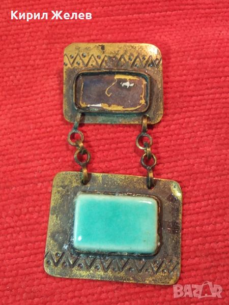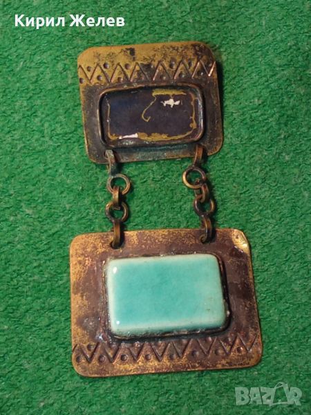 СТАРИННА БРОНЗОВА БРОШКА с ЦВЕТЕН ЕМАЙЛ - ПЛОЧКА 72761