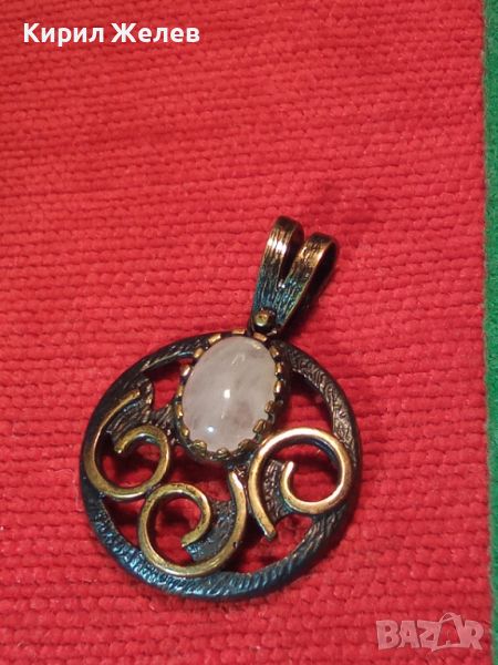 ВИНТИДЖ СТАР БРОНЗОВ КРАСИВ МЕДАЛЬОН с ЛУНЕН КАМЪК 15113