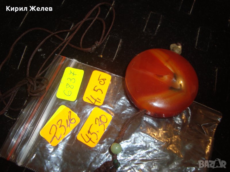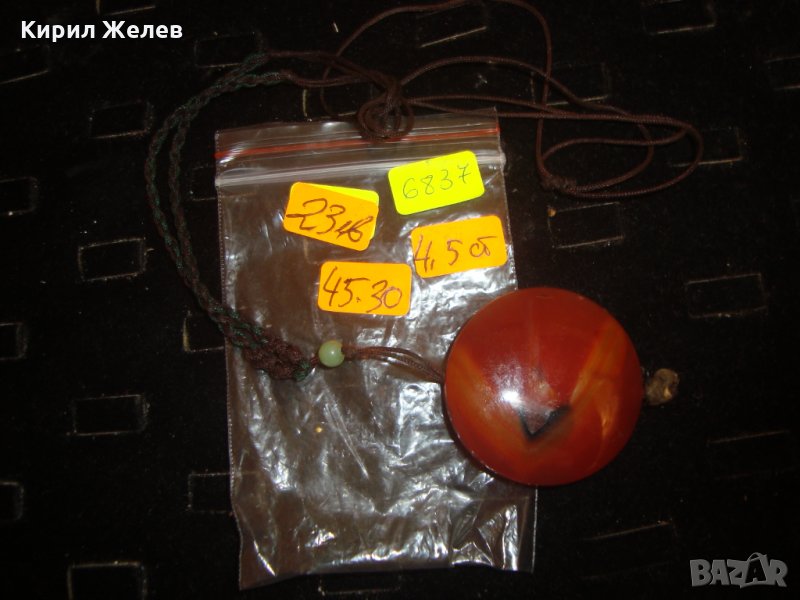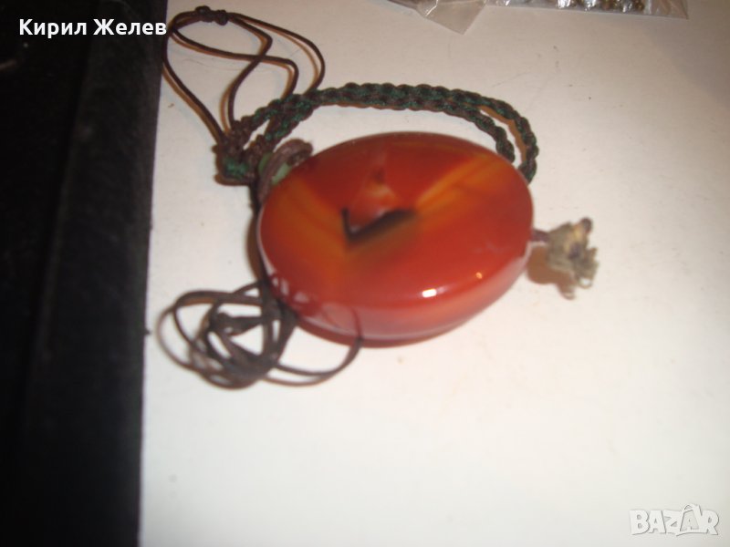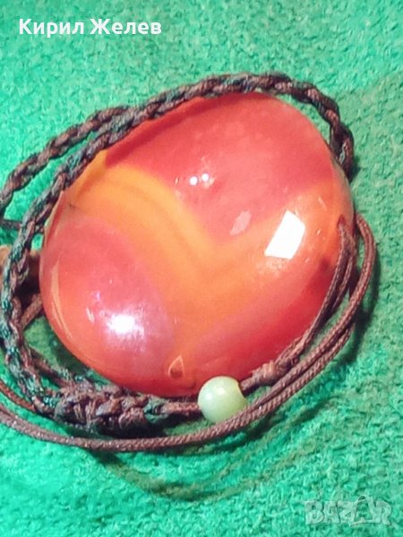 ОГРОМЕН НАТУРАЛЕН КАРНЕОЛ АРТ МЕДАЛЬОН БИЖУ 6837