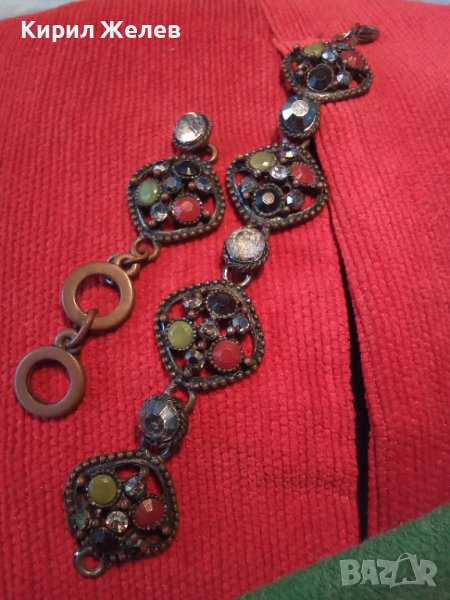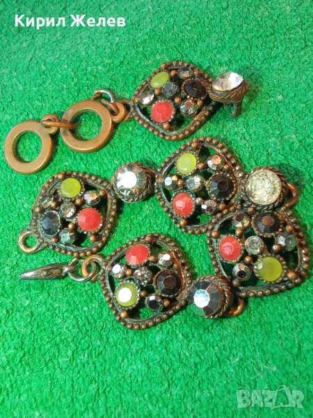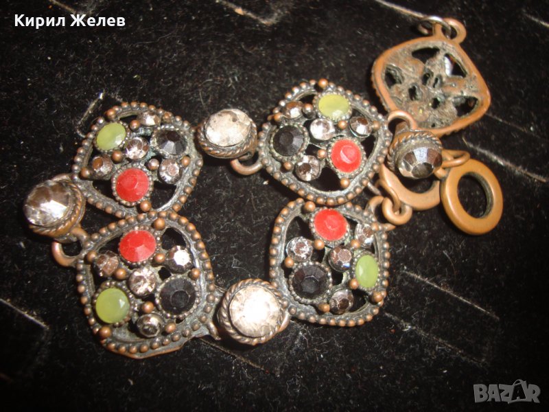 СТАРА МЕДНА ГРИВНА с МНОГО ЦВЕТНИ КРАСИВИ КАМЪНИ 14241