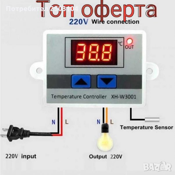 Термостата има само два бутона, изведени кабели вход/изход, с елементарна настройка на параметрите и свързване. Диференциална разлика настройка на ниска и висока температура директно от бутоните със задържане :. Ляв бутон за настройка температура за включване