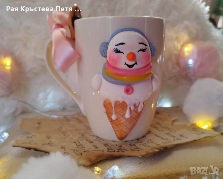 Чашите са изработени с полимерна глина. Прекрасен начин да зарадвате себе си или да направите един уникален и запомнящ се подарък, с който ще покажете Вашето специално отношение.Както и самата форма на чашата може да е различна от тази на снимката, според това какво имаме наличност.