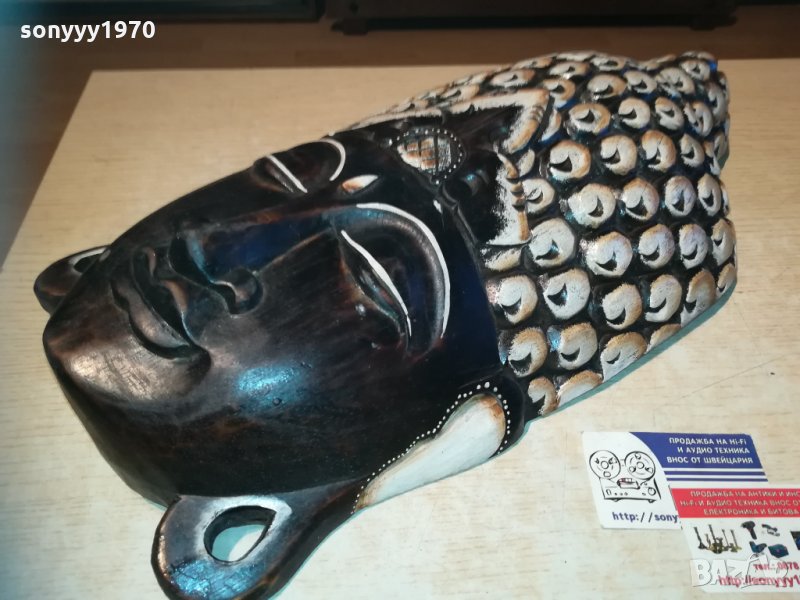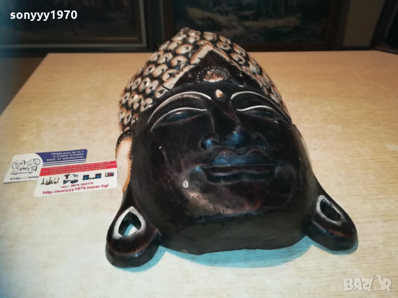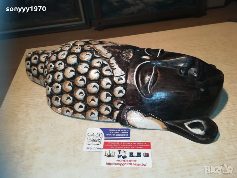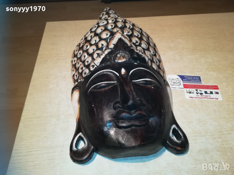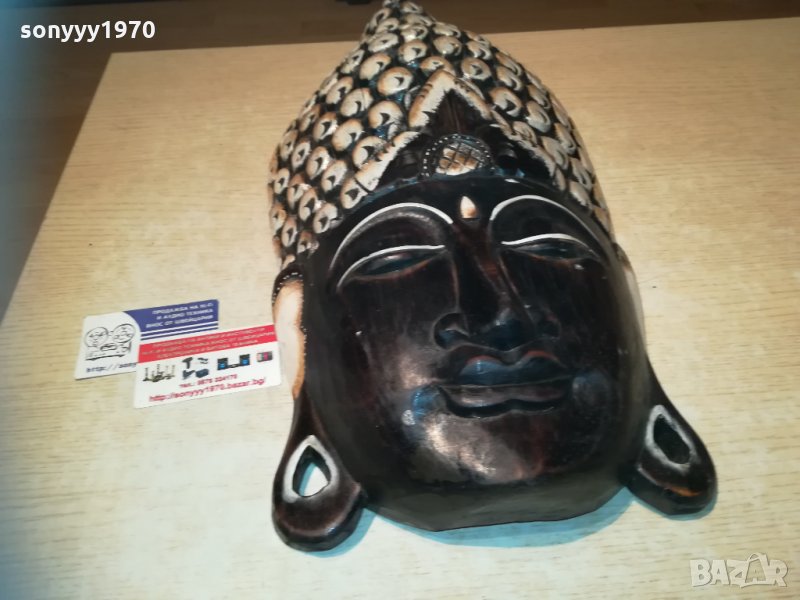 ГОЛЯМА маска стенна от дърво Буда декорирана 0311202206
