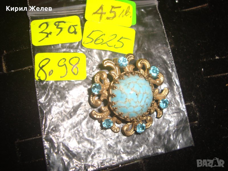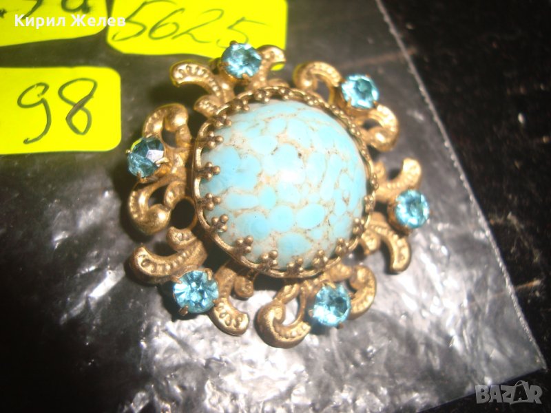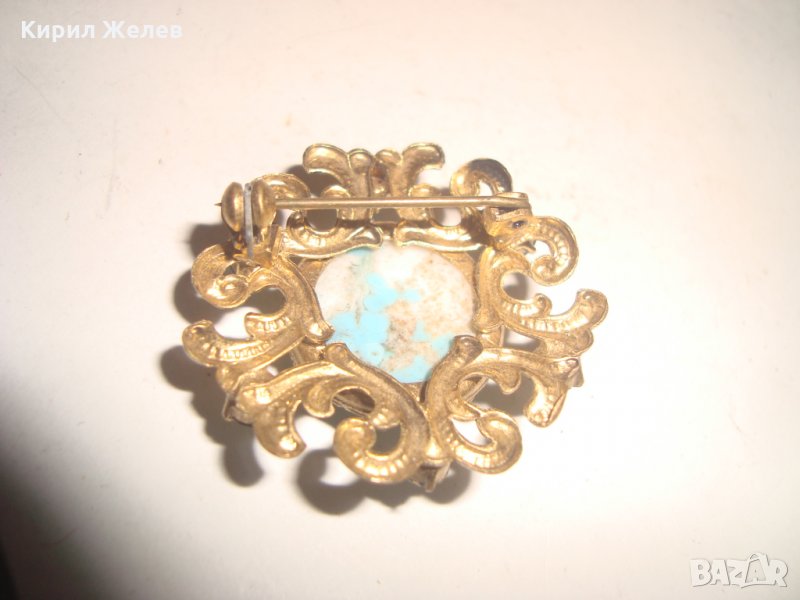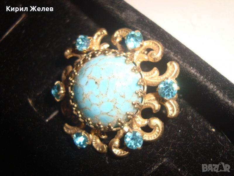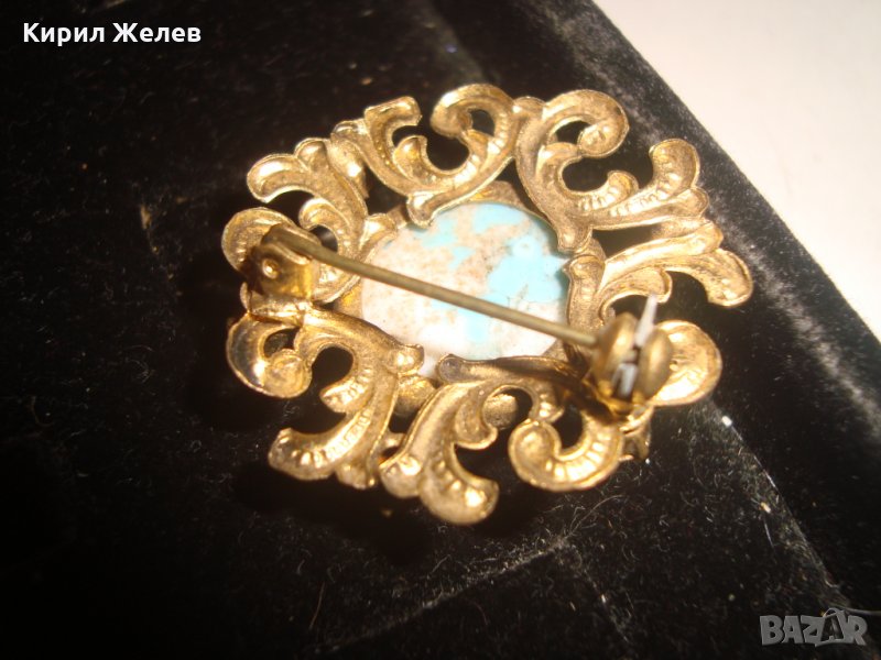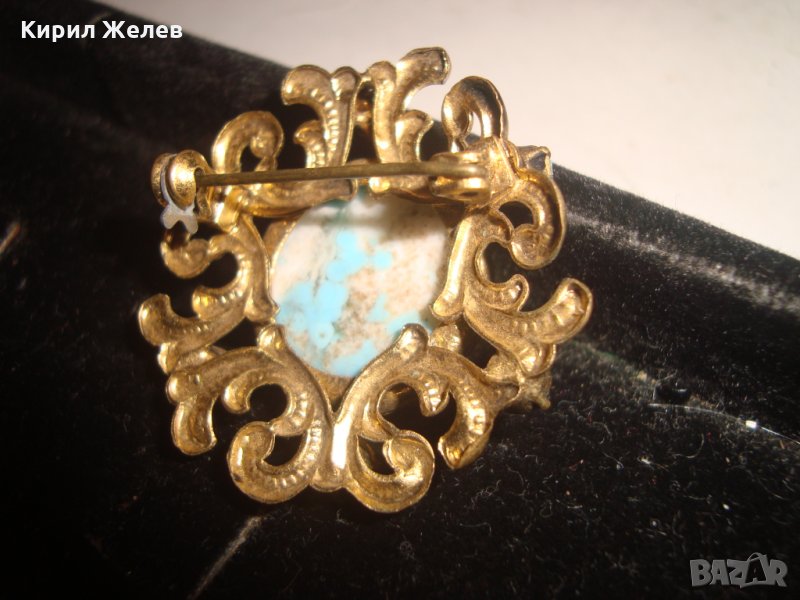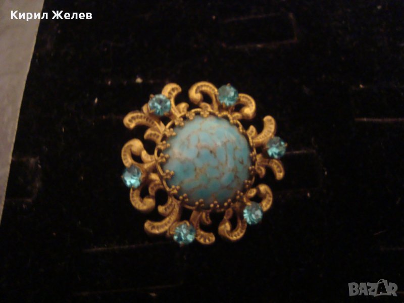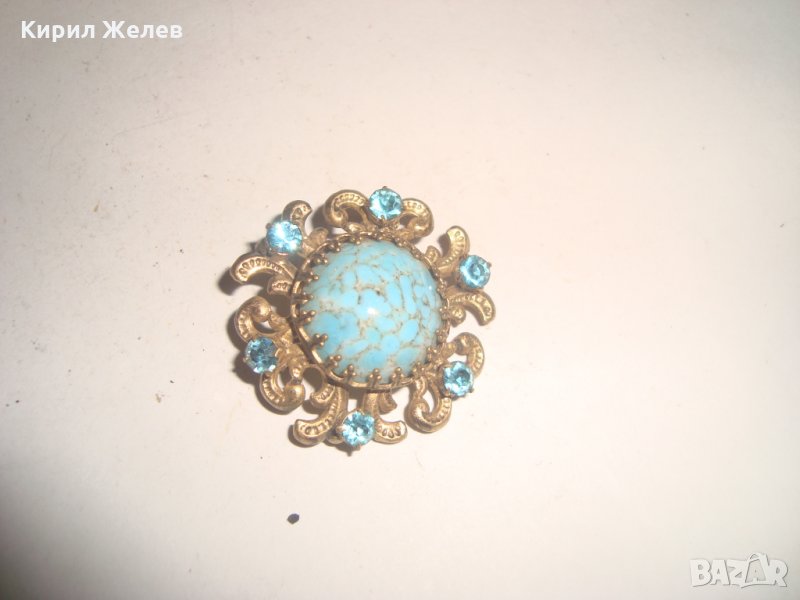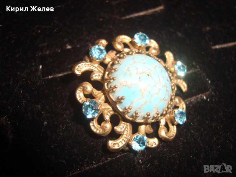ТЮРКОАЗЕНА БЕЛ ЕПОК СКЪПОЦЕННА БРОШКА БРОНЗ ПОЗЛАТА 20-те ГОДИНИ със САПФИР КРИСТАЛИ 10072