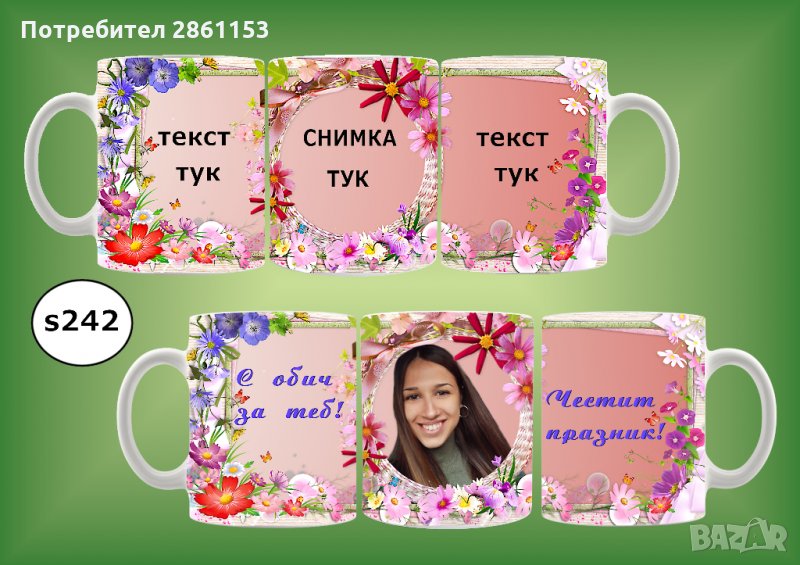 *Цената на една чаша без снимка,с дизайн по избор от предложените в обявата,