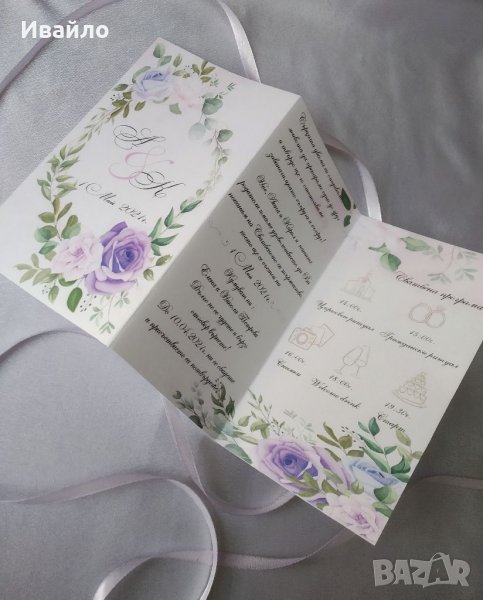 Изработка на сватбени покани изцяло по желание на клиента.