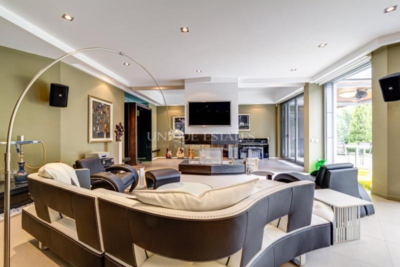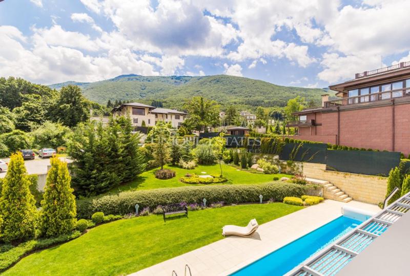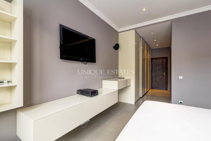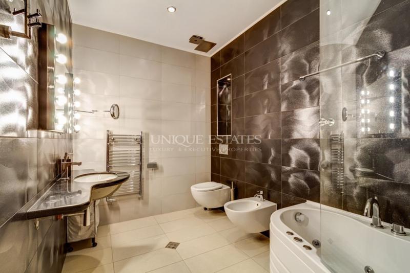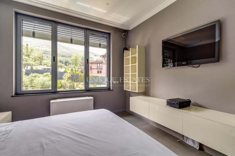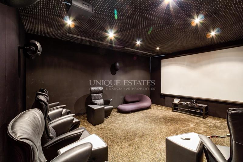 Второ ниво - две спални за гости, всяка със собствен санитарен възел, кухненски бокс, зона за фитнес, уникална панорамна тераса с прекрасна гледка към Витоша и София. Професионален киносалон, оборудван с най-висок клас техника. Ref. ID:5584