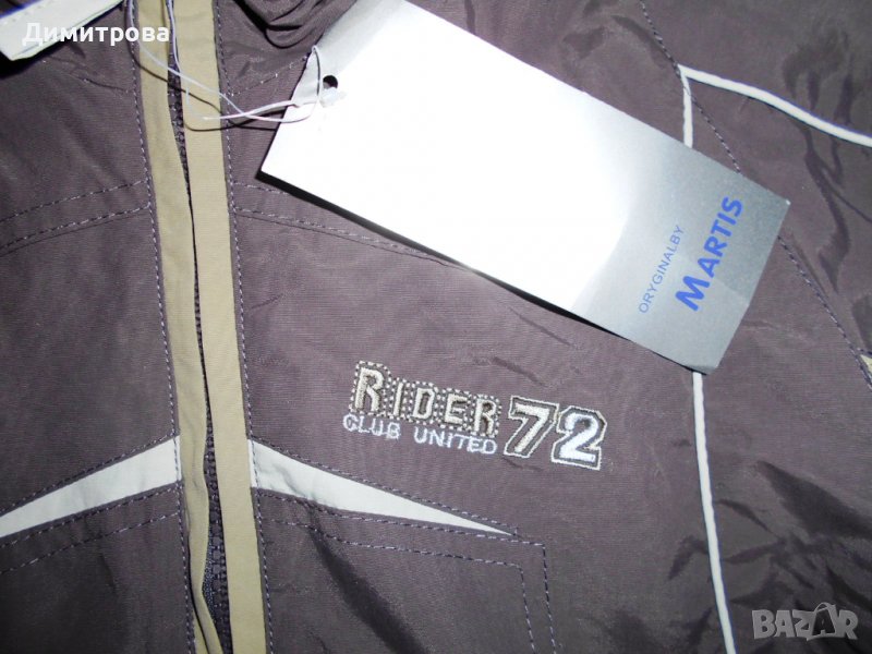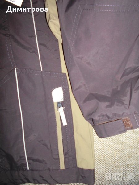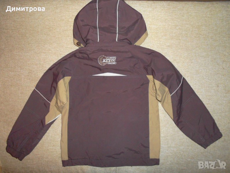 От здрава промазана материя /не е шушляк!/ отвън, отвътре е с памучен хастар, включително и на качулката, която се сваля. Джобчета с цип, ширината на ръкавите долу може да се регулира. Идеално за пролетта.