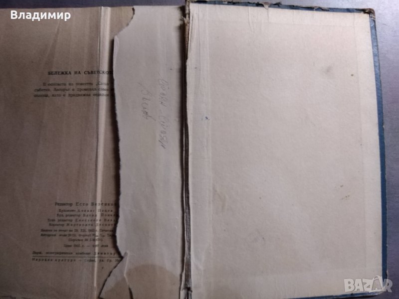 Книгата е в прилично състояние. Забележки: по кориците от употрена, пожълтели страници и последната корична страница е скъсана(вижда се от снимката).