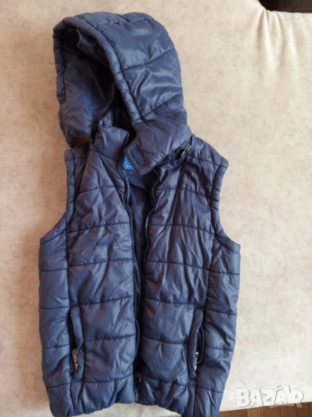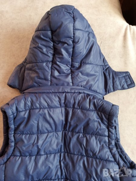 Тъмно син елек за момче.Качулката се сваля.Дължина 50 см.,ширина 38 см.