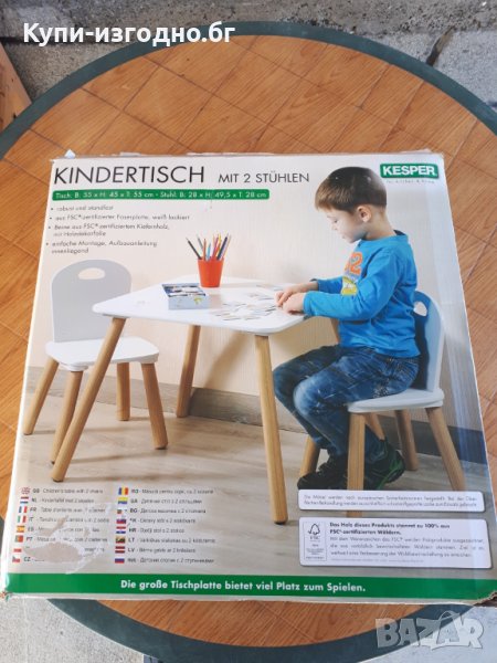 Детският комплект за сядане с два детски стола от KESPER® носи голяма радост както на малки, така и на големи. Играта, рисуването и храненето вече са преместени на детската маса, където вашите деца могат да се забавляват много и да се забавляват Среща на страни от живота. Търсите ли децата си? Малък вътрешен съвет: Първо погледнете детската маса. Смеейки се и играейки, всички се състезават за последната бисквита и заедно допълват новия, голям пъзел. Детските столове са прецизно съобразени с техните нужди Съчетайте вашите големи. Направете дома си малко по-подходящ за деца и си осигурете страхотни елементи за обзавеждане, които ще донесат голяма радост на децата. Краката на масата и стола са покрити с декоративно дървено фолио. Тъй като околната среда и бъдещето на вашите деца са също толкова важни за нас като вас, ние използваме само FSC® сертифициран материал за нашите детски мебели! "