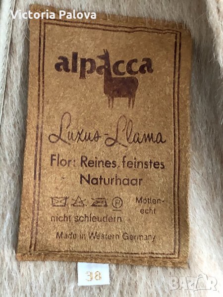 Уникално ексклузивно палто,на допир е гладко,като коприна,натурален косъм,който има копринен блясък,хипоалергенно,леко,натурални оцветители.благодарение на природни свойства на влакната алпака не се цапа(влакното няма мас),отблъсква прах и мръсотия.въпреки ,че е леко,топли 7 пъти повече от обикновена вълна. рамене-42см,ГО-54-55см,цялата дължина-110-111см,ръкав-57см.