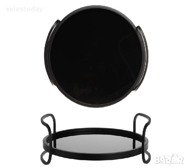 Декоративен метален поднос в черен цвят, с черен стъклен плот – Ø38см