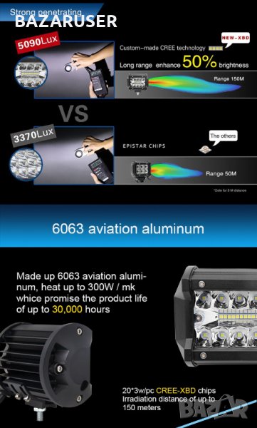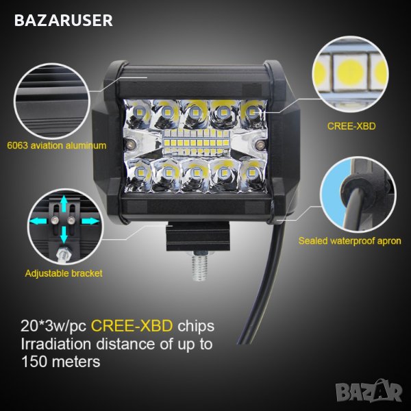 Алуминиев Халоген -LED DC9-32V - 60 W -9.5 см. /250564 → Обява 30708080