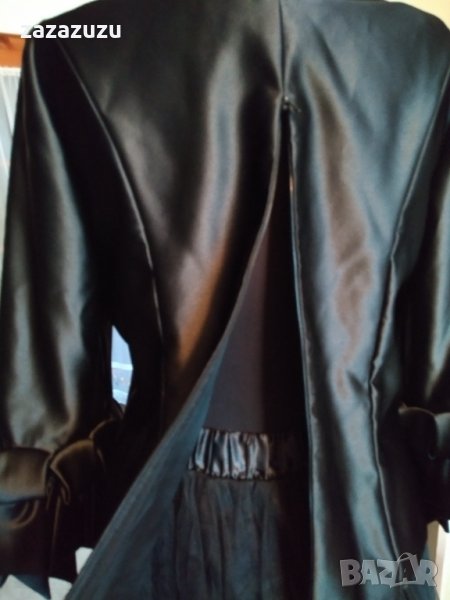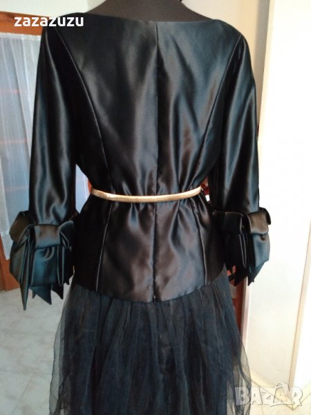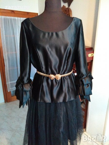 Официална черна дамска блуза от лимитирана серия на FRANK USNER-UK, с разкошен маншет от пандели, с цип на гърба, с подплата, супер ефектна. Дължина от тила до долу 52см, ръкав 57см.