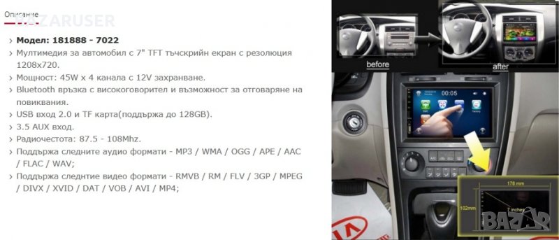 7. Поддържа следните аудио формати MP3/WMA/OGG/APE/AAC/FLAC/WAV