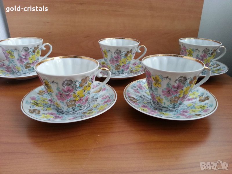 Руски порцеланов сервиз за чай лфз 5бр чаши 5бр чинии. маркиран фин порцелан съветски ссср сервиз комплект сет лот ретро арт декор винтидж колекция стари старинни антикварни предмети обзавеждане за дома и семейството подходящи за подарък за ценители и колекционери 1сет -120лв