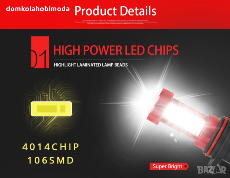 Приложение: Фарове за мъгла / външни светлини, Задни светлини, Фара, Предни светлини, Задна крушка, Крушка за мигачи. H7 Лед LEd мощни 106 леда