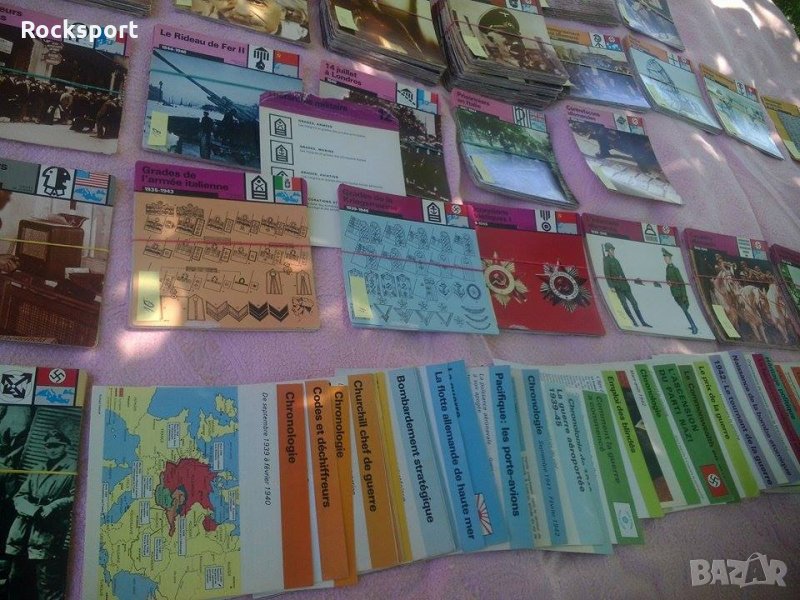 Продавам голяма колекция от цветни картички-показващи Втората световна война-в хроники дати и тн...Печатени са в Женева през 70те години на миналия век.Имам описи на колодите.Над 2500броя са!!!