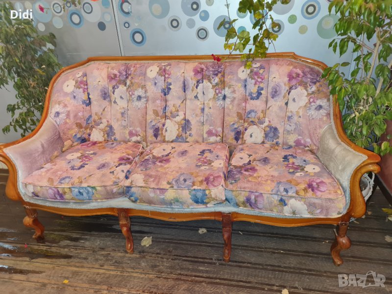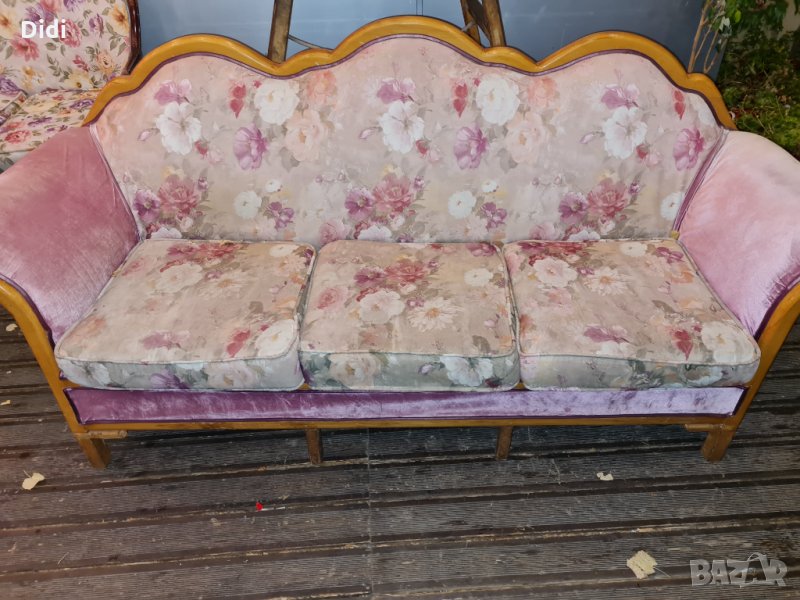 Употребявани дивани в ретро стил. Двуместни дивани - 100 лв/бр. Троен диван /розов/ 160 лв. Троен диван /син/ 260 лв.