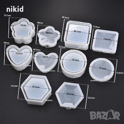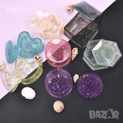 3d Кутия с капак 2 части квадрат кръг сърце шестоъгълник молд форма кутия кутийка бижута смола → Обява 30716125