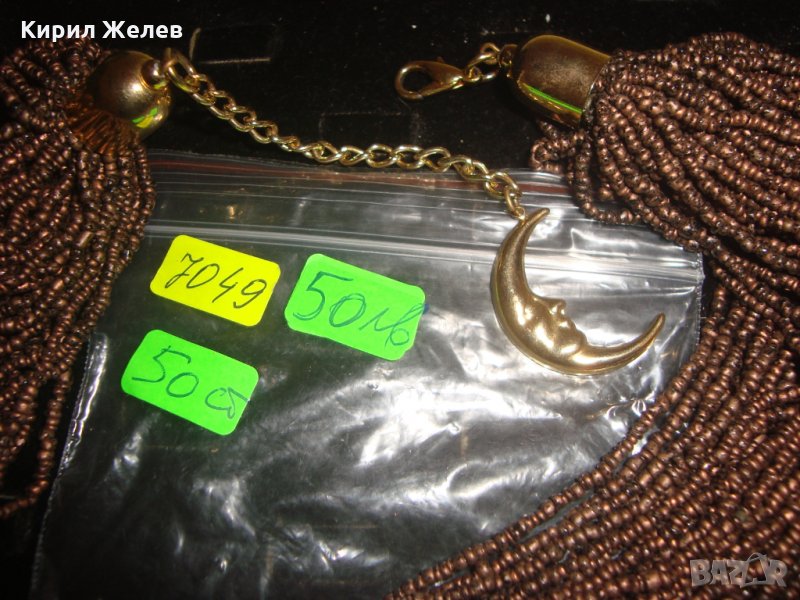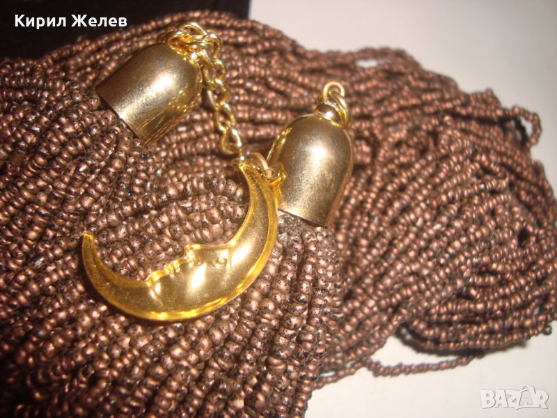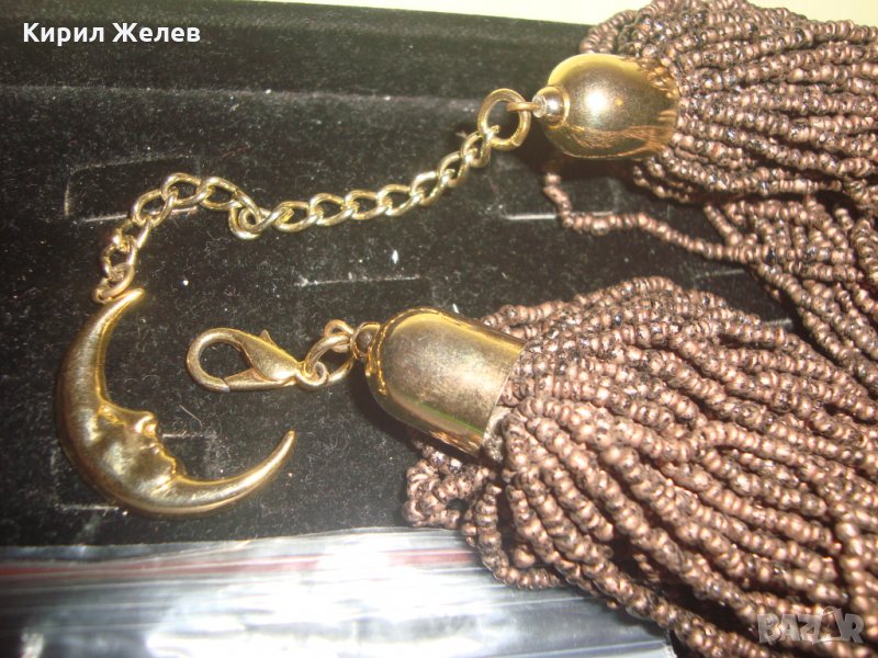 РАЗКОШНА МЪНИСТЕНА ОГЪРЛИЦА ХИЛЯДИ ЦВЕТНИ МЪНИСТА РЪЧНО НИЗАНА с МЕСИНГОВ ПОЗЛАТЕН ПОЛУМЕСЕЦ 7049