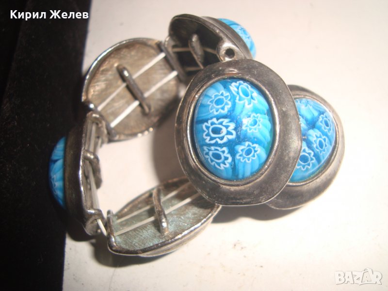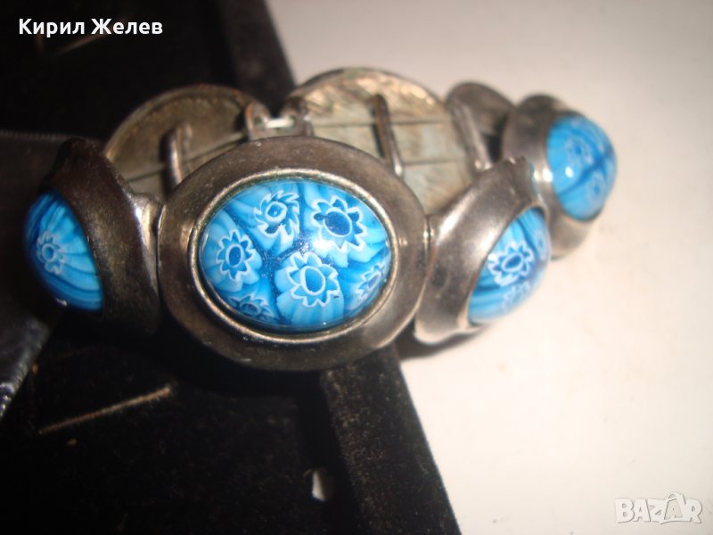АРТ ГРИВНА СРЕБРИСТА с ВЕНЕЦИАНСКО ЦВЕТНО СТЪКЛО МУРАНО РАЗТЕГЛИВА СРЕБРИСТ МЕТАЛ 9221