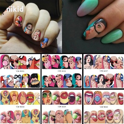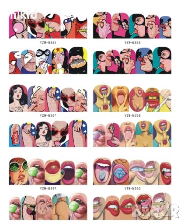 6 вида Комикс устни лист ваденки водни стикери слайдери за нокти маникюр → Обява 30720550
