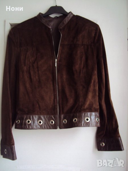 Велурено яке кафяво от естествена кожа. Ново.Само е махнат етикета .Размери: От рамо до рамо 40 см. От подмишница до подмишница 47 см. Дължина 52. Дължина на ръкава 58 см. Ръст С. Якето е на марка Rockeds . Има също подплата!