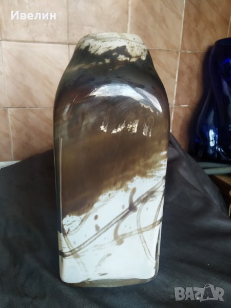 стъклена ваза в стил арт,ръчна изработка.висока е 29см,страните са 13см/12см,отвор 4,5см.