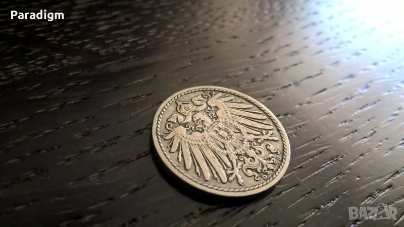 Монета - 5 пфенига от 1908г.; серия D