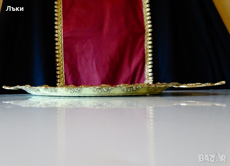 трапеза.Височина 2 см.,дължина 44.5 см.,ширина 24.5 см.Размер на дъното 26 х 17 см.Тегло 490 гр.
