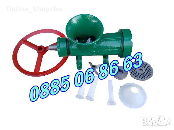 Вариант 3: Чугунена месомелачка № 32 с 2 бр. решетки, 2 бр. ножове, 1 комплект фунии за пълнене и приставка за домати и чушки - 95 лв.