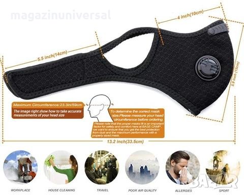 – Маска с включен защитен 5 слоен филтър от активен въглен против замърсяване (в комплекта е включен филтър N95)