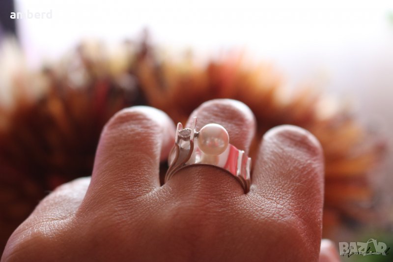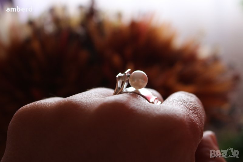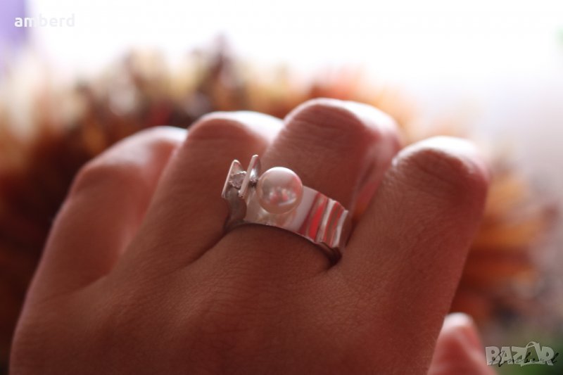 Невероятно красив и елегантен пръстен, изработен от сребро проба 925 и култивирана перла. Вътрешен диаметър 18.5мм. Идеален подарък за вас или ваши приятели и близки.