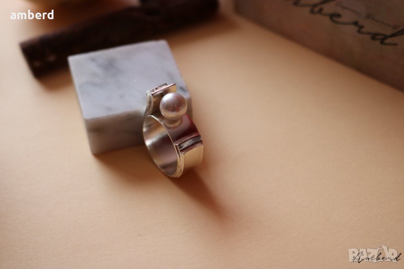 Стилен и елгантен сребърен пръстен с перла - модел R017A