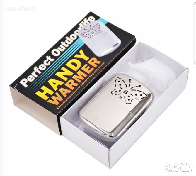 Как действа? Посредством катализатора в дюзата се запалват бензиновите пари и те горят без пламък (тлеят). От повишената температурата се нагрява цялата запалка и тогава тя влиза в работен режим и е готова за използване. Благодарение на процеса платинена катализа се отделя единствено и само горещ въздух, който е незапалим. Създаден с цел да поддържа телесната температура в нормални граници през студените зимни дни. Технически характеристики: Размери: 97х68х18 мм; Тегло: 80 гр.; Разход: 1 мл/час; Гориво: Бензин за запалки Zippo, Ronson; Безпламъчна технология (с платинен катализатор) Начин на употреба: Отстранете декоративният капак (с отворите за въздух). Издърпайте и свалете дюзата. Поставете дозатора върху резервоара, напълнете го с желаното от Вас количество бензин, завъртете го на 90 градуса и изчакайте горивото да изтече. Поставете дюзата обратно на нейното място и разпалете уреда, посредством запалка или кибрит в продължение на 4-5 секунди - няма да се образува пламък, технологията на горене е безпламакова. След около минута поставете и декоративния капак. Внимание! Не мокрете и не наранявайте дюзата с катализатора. Подходящ за: скиори, сноубордисти, алпинисти, ловци, рибари, планинари и от всички, които са се отдали на удоволствието да прекарат приятни мигове сред природата през зимата или за хора, които работят навън. Комплектът включва: Един брой джобна печка Дозатор Поларена торбичка