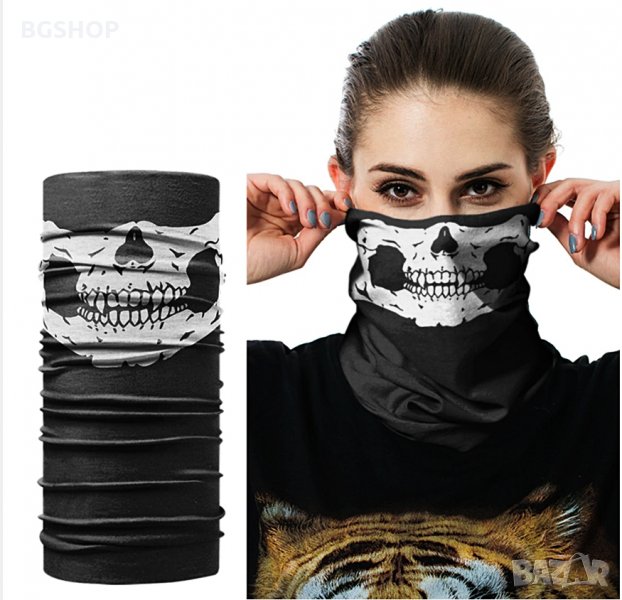 Маска тип шал, която се нахлузва директно през главата. Предназначена за различна употреба като: ски, алпинизъм, колоездене, мото спортове и други подобни. Направена от 100% полиестер защитаващ от различни неблагоприятни атмосферни условия или просто студен въздух. Материята е разтеглива, това прави УНИВЕРСАЛНИЯ РАЗМЕР, подходящ за употреба както от деца така и за възрастни. Размер 47 х 25 см, можете да ги използвате и като ръкав на ръката или кърпа за главата.